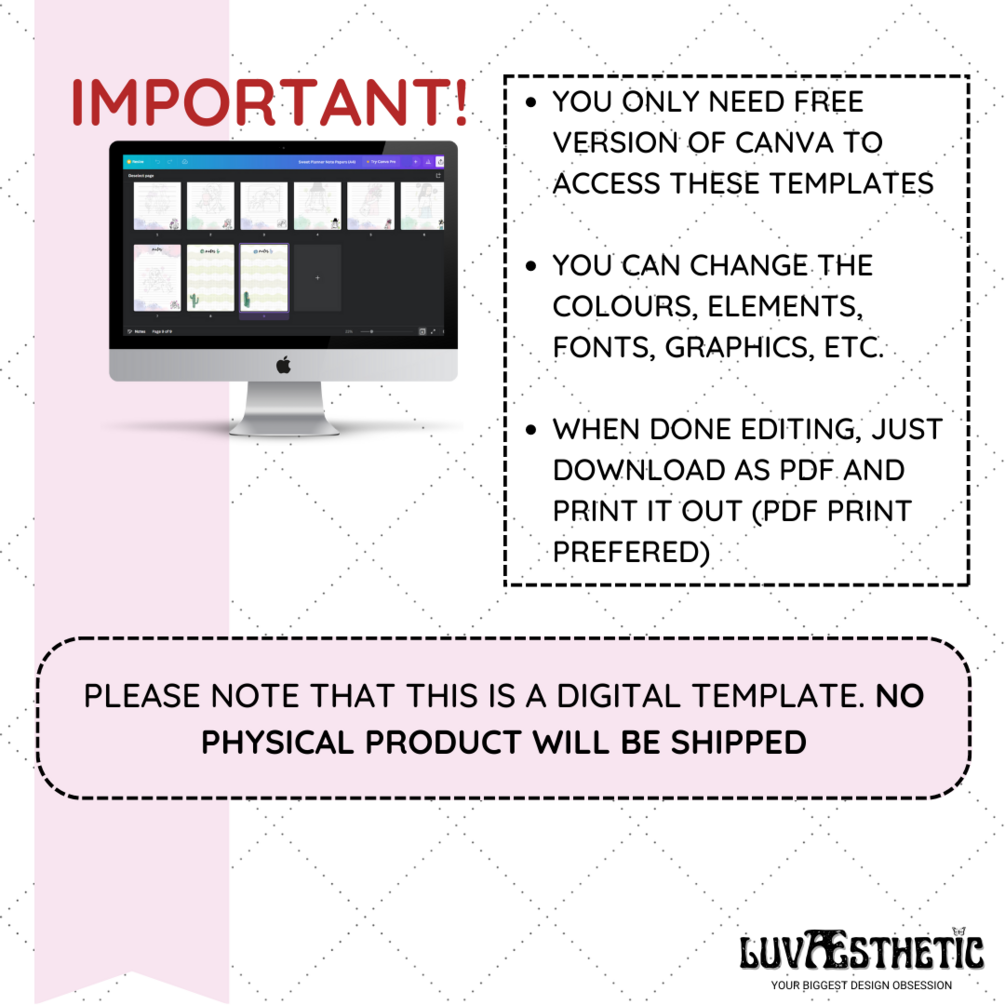 After you purchase this product, you will get the PDF that contains the hyperlinks. Those links will bring you to the planner templates on Canva. Happy Editing!😊